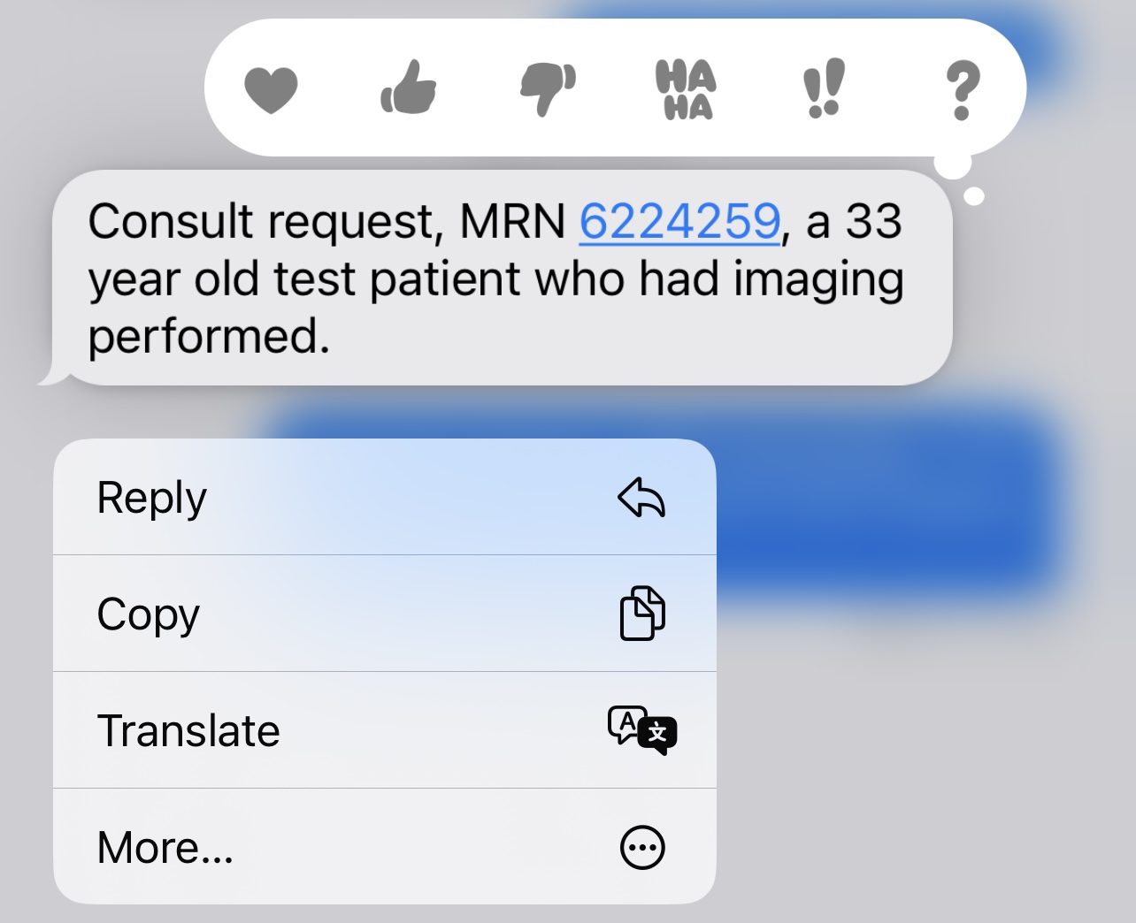 Tripodr will work from shared notes, emails, PDFs, and WhatsApp messages. It will also work from photos of PACS viewers, facesheets, Spok pages, patient labels, and wristbands. Not all apps provide an interface for directly sharing to Tripodr, but you can always take a screenshot.
