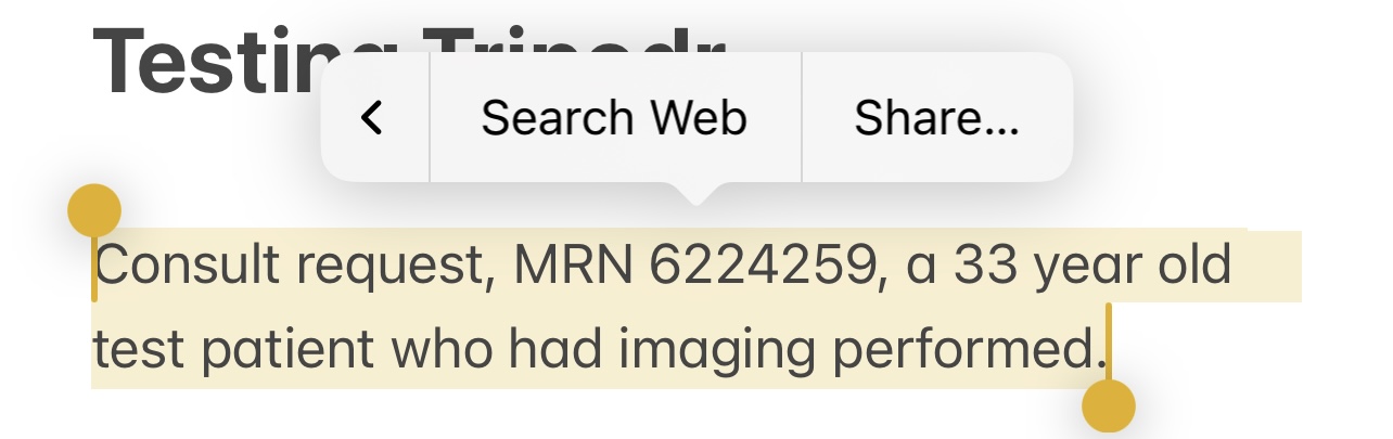 Tripodr analyzes text and images on your phone to find medical record or accession numbers, and passes them to the Visage viewer. There are two main ways to do this:
